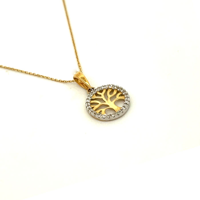 Κολιέ σε κίτρινο Χρυσό Κ14 με το Δέντρο της ζωής και πέτρες Ζιργκόν