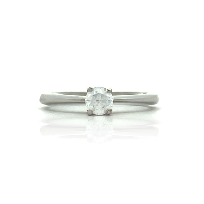 Ένα δαχτυλίδι μονόπετρο κατασκευασμένο από Λευκόχρυσο Κ14.